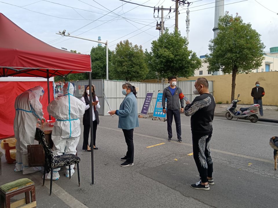 “請排好隊,間隔1米,提前準備好身份證或核酸檢測二維碼……”卡口做核酸檢測時,我們的志愿者會協助社區人員維護好現場秩序,對不會使用核酸檢測碼的主動幫助完成注冊,大大提高了核酸檢測工作的進度。